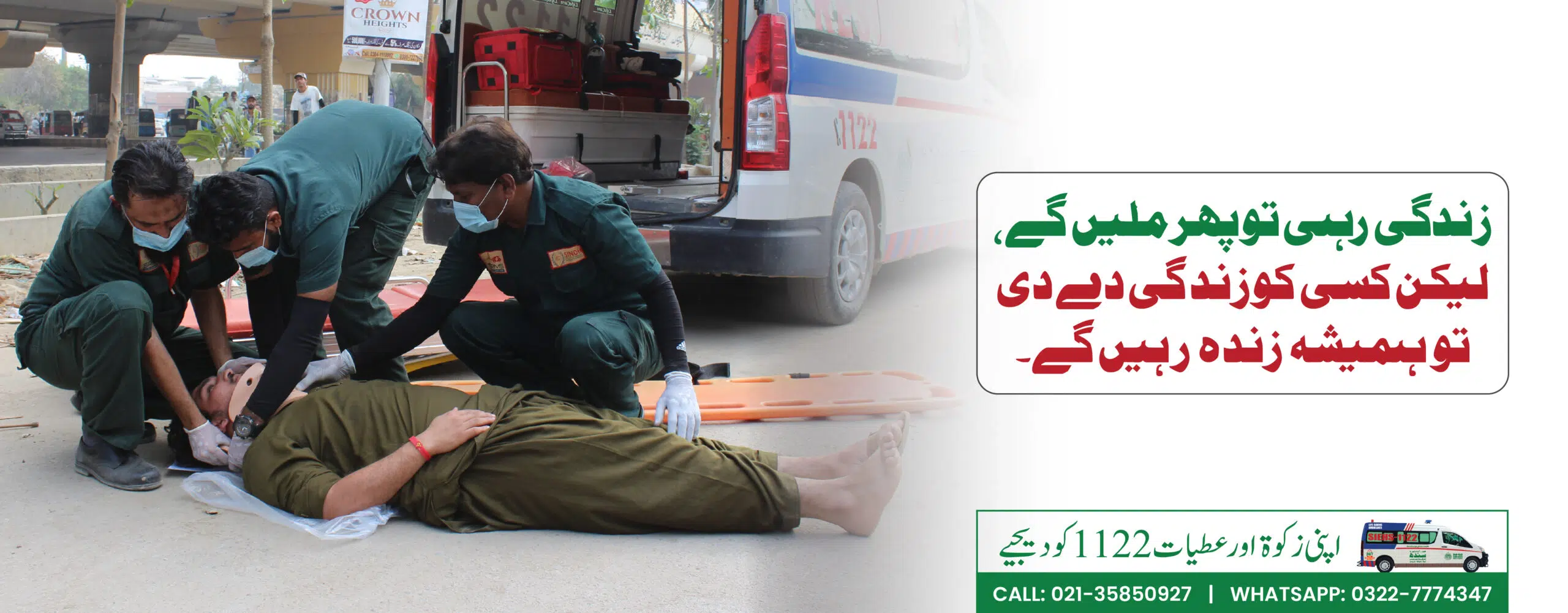 If you need a reliable and free ambulance service in Karachi or anywhere in Sindh, simply dial 1122. The Sindh Integrated Emergency & Health Services (SIEHS-1122) provides a state-of-the-art, life-saving, and 24/7 emergency ambulance service.